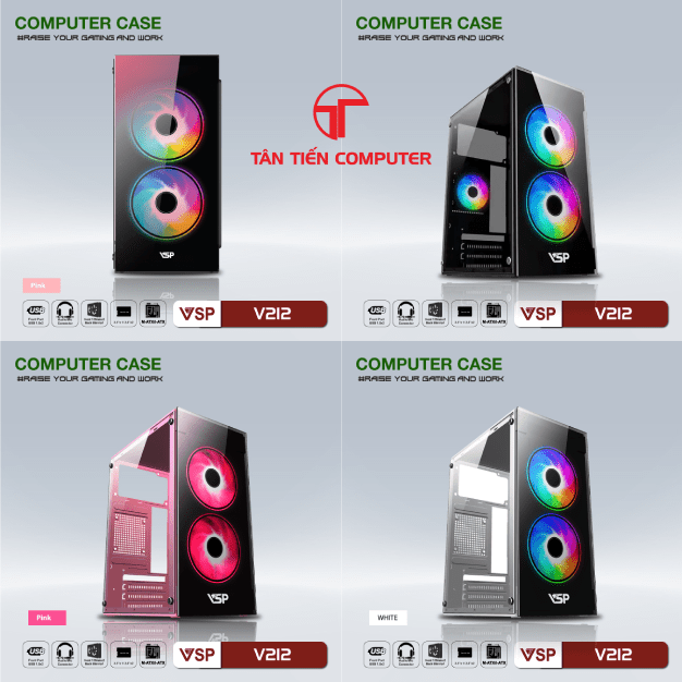 Chi Tiết Vỏ Case VSP V212 (mATX) – Mặt Hai Kính Cường Lực