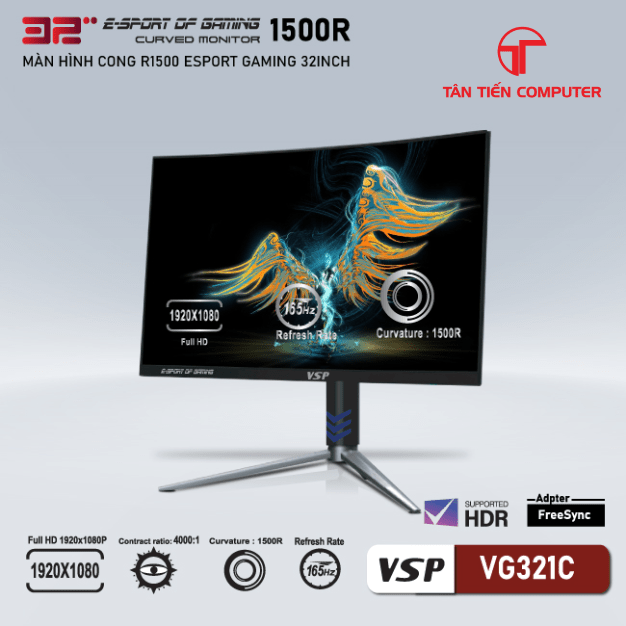 - Màn hình cong VSP FHD 32inch ESport Gaming VG321C hiện đã có tại cửa hàng của Tân Tiến với mức giá vừa phải và nhiều ưu đãi lớn.